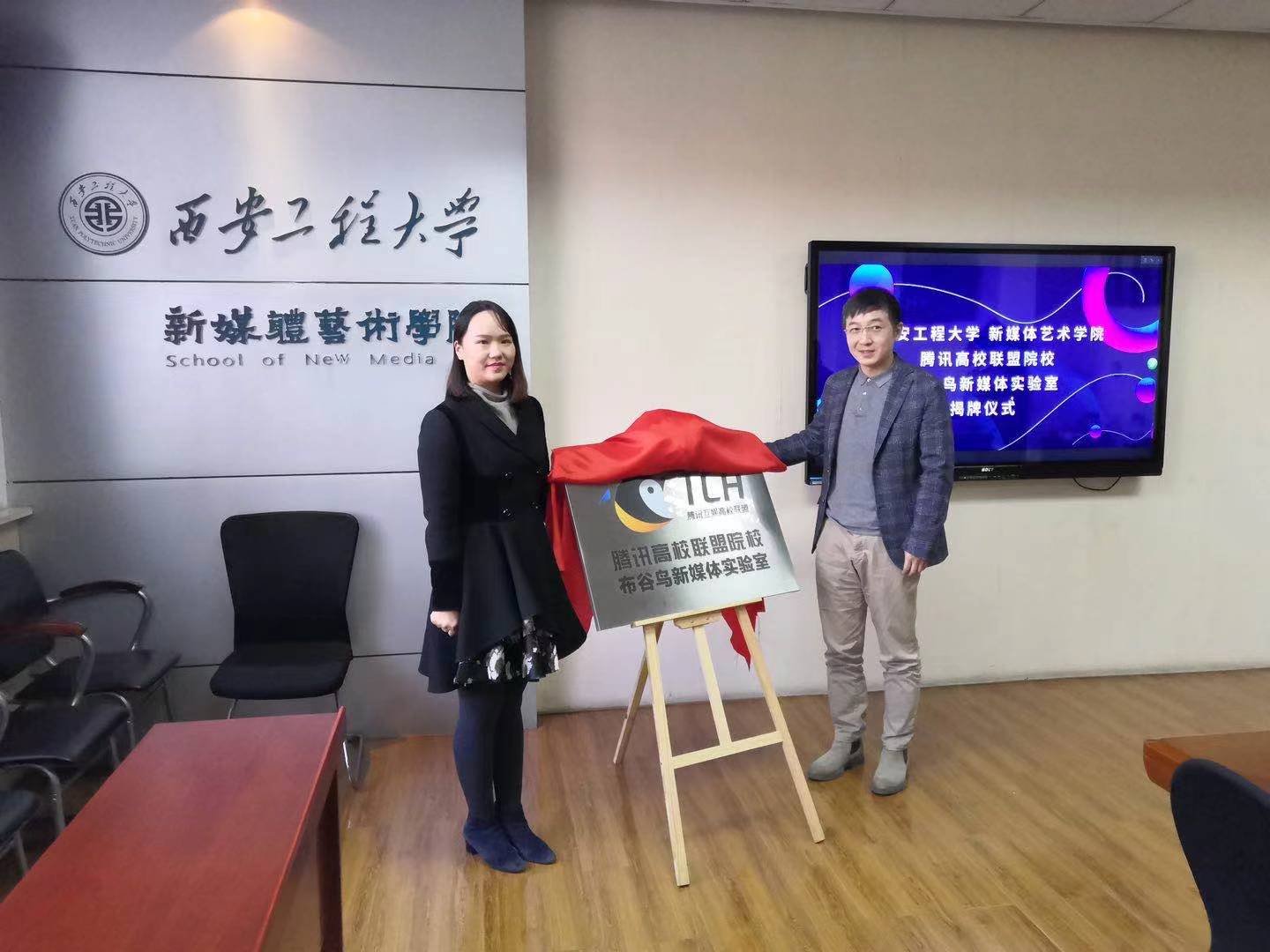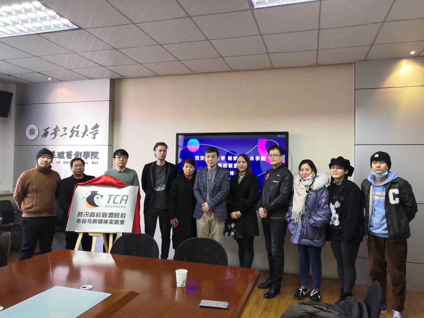 2021年1月7日, 腾讯高校联盟院校布谷鸟新媒体实验室在搜书吧 搜书吧 会议室落成。腾讯互娱平台营销部陕西片区市场经理朱莉,搜书吧 院长马冬、副院长丛红艳、动画专业教师出席了仪式,仪式由影像动画艺术系主任雷桐主持。