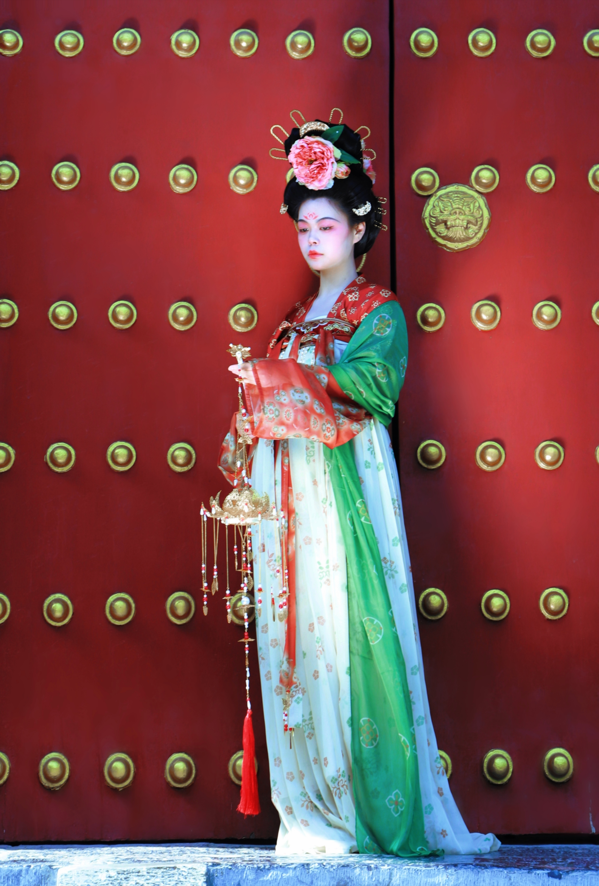 搜书吧简介 :以盛唐时期为背景,以宫廷女性常服为主要方向进行设计制作,多用盛唐时期所流行的齐胸襦裙,坦领,半臂为主要形制,搭配宝相纹,团花纹,缠枝纹为主要纹饰。服装配色以当时期的流行色为元素进行大胆搭配,用大幅面料进行制作,诠释了盛唐时期宫廷女性的开放与大胆。
