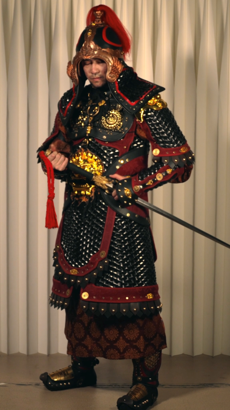 作品搜书吧简介 :作品以唐代“万国来朝”为设计背景,灵感来源于《唐六典》记载“唐十三铠”中的山文甲。在设计过程中,色彩采用黑色、红色、金色,采用半裹的甲胄形制。制作过程当中主要采用金属山文甲片和皮革,通过甲片编连,皮革打孔、撑皮、铸造、铆钉固定以及包边工艺,希望借此作品展示盛唐气象。同时,将复原与创新的概念融入在设计当中,期望为影视服饰中铠甲设计提供参考。